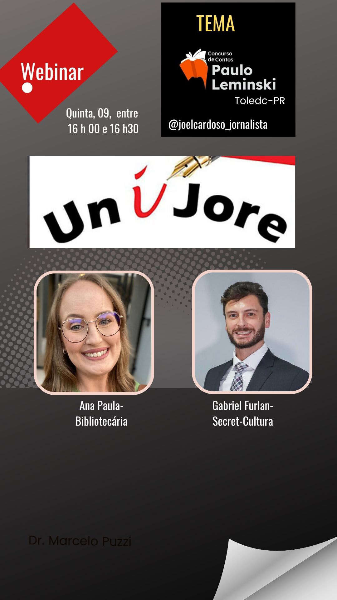 O núcleo de jornalismo da UNIJORE, responsável por esta 2ª. Webinar-2026- destaca que esses eventos literários são atividades promovidas e realizadas, claro, pela Prefeitura Municipal de Toledo, por meio da Secretaria de Cultura e a inclusão oficial da Biblioteca Pública Municipal.